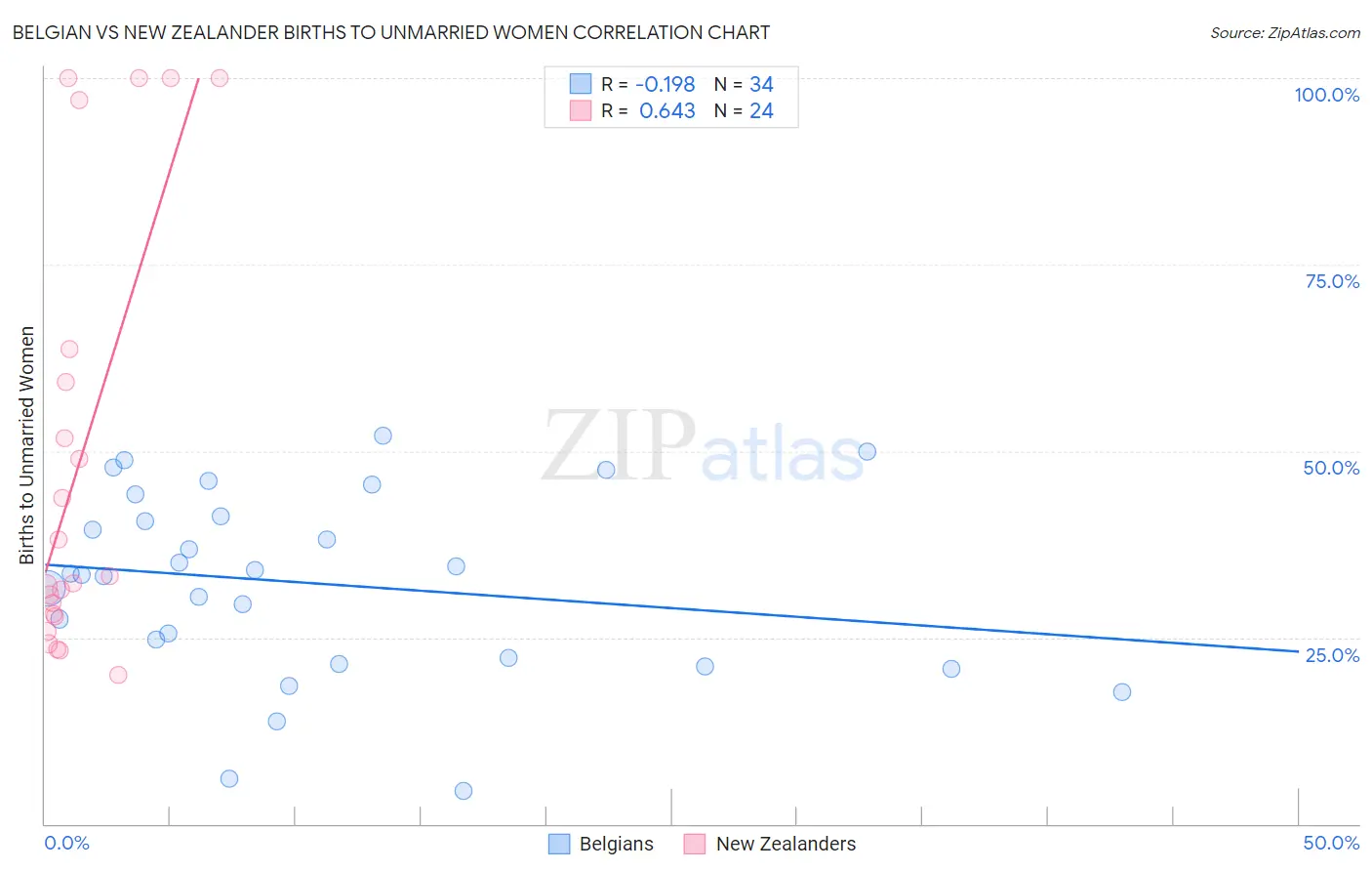 Belgian vs New Zealander Births to Unmarried Women Correlation Chart