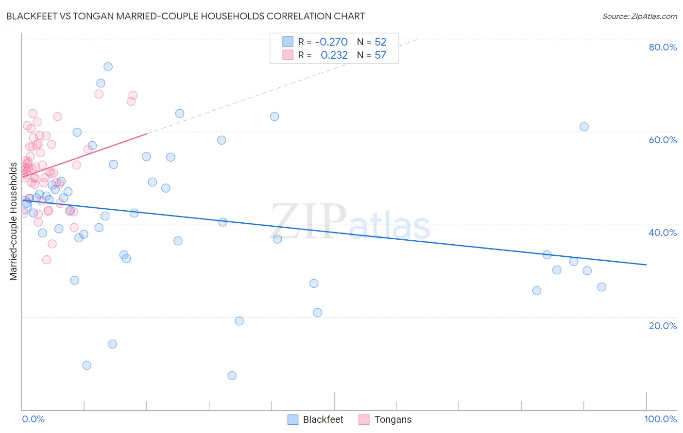Blackfeet vs Tongan Married-couple Households Correlation Chart