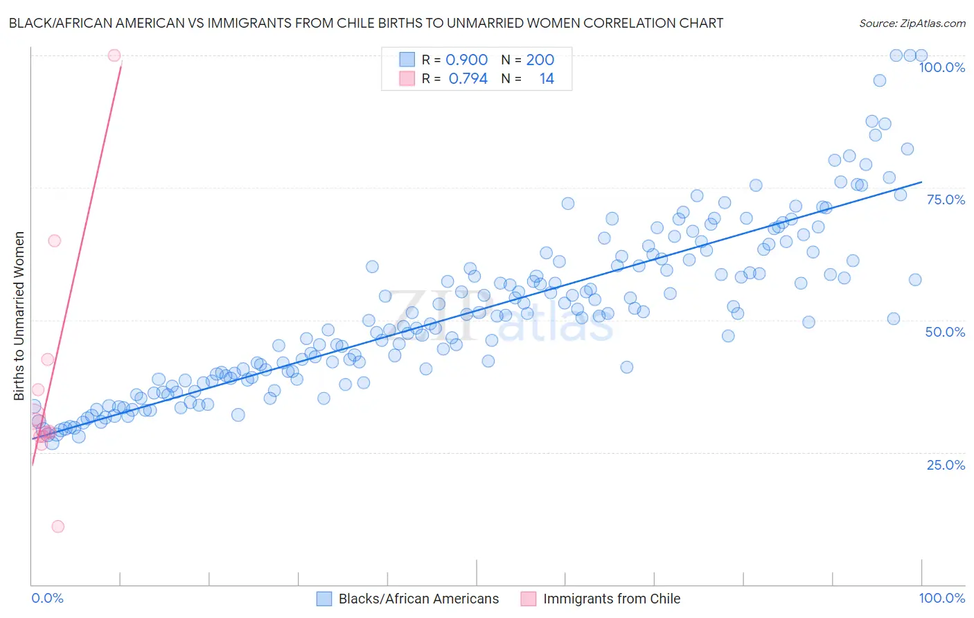 Black/African American vs Immigrants from Chile Births to Unmarried Women Correlation Chart