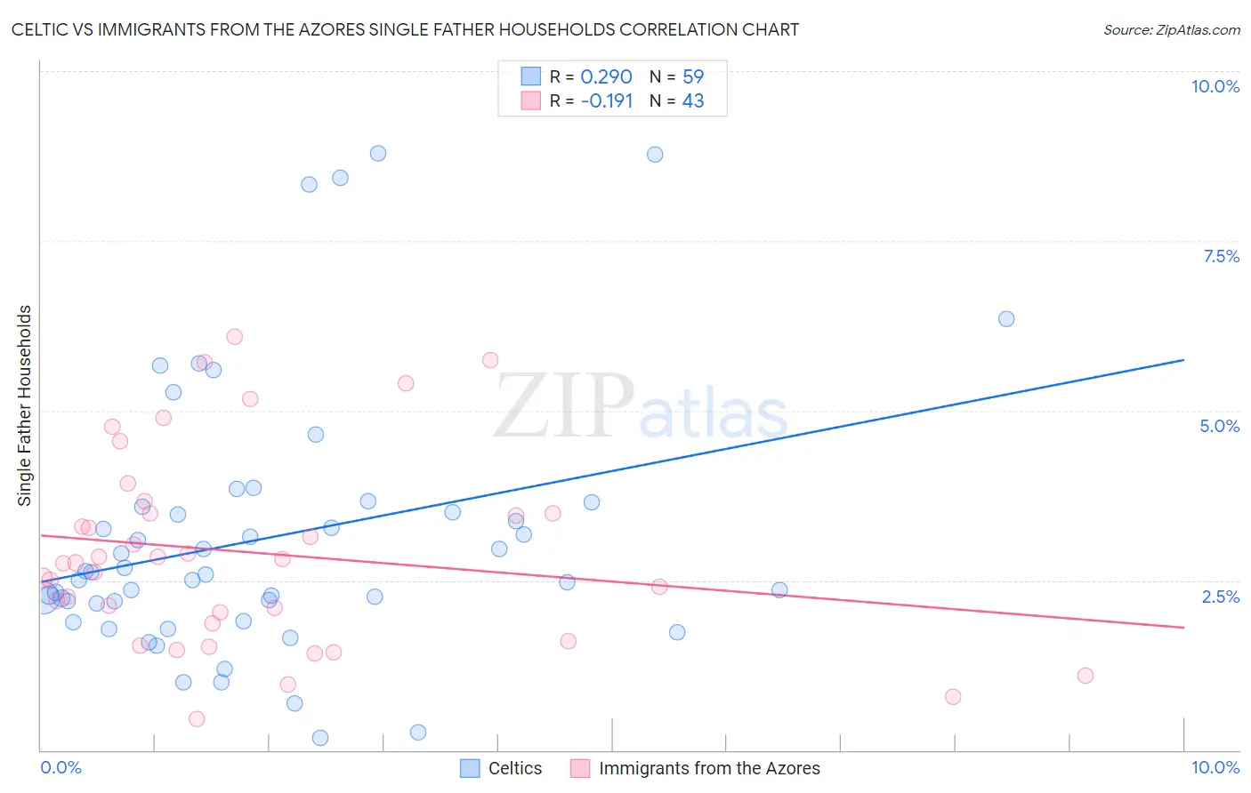Celtic vs Immigrants from the Azores Single Father Households Correlation Chart