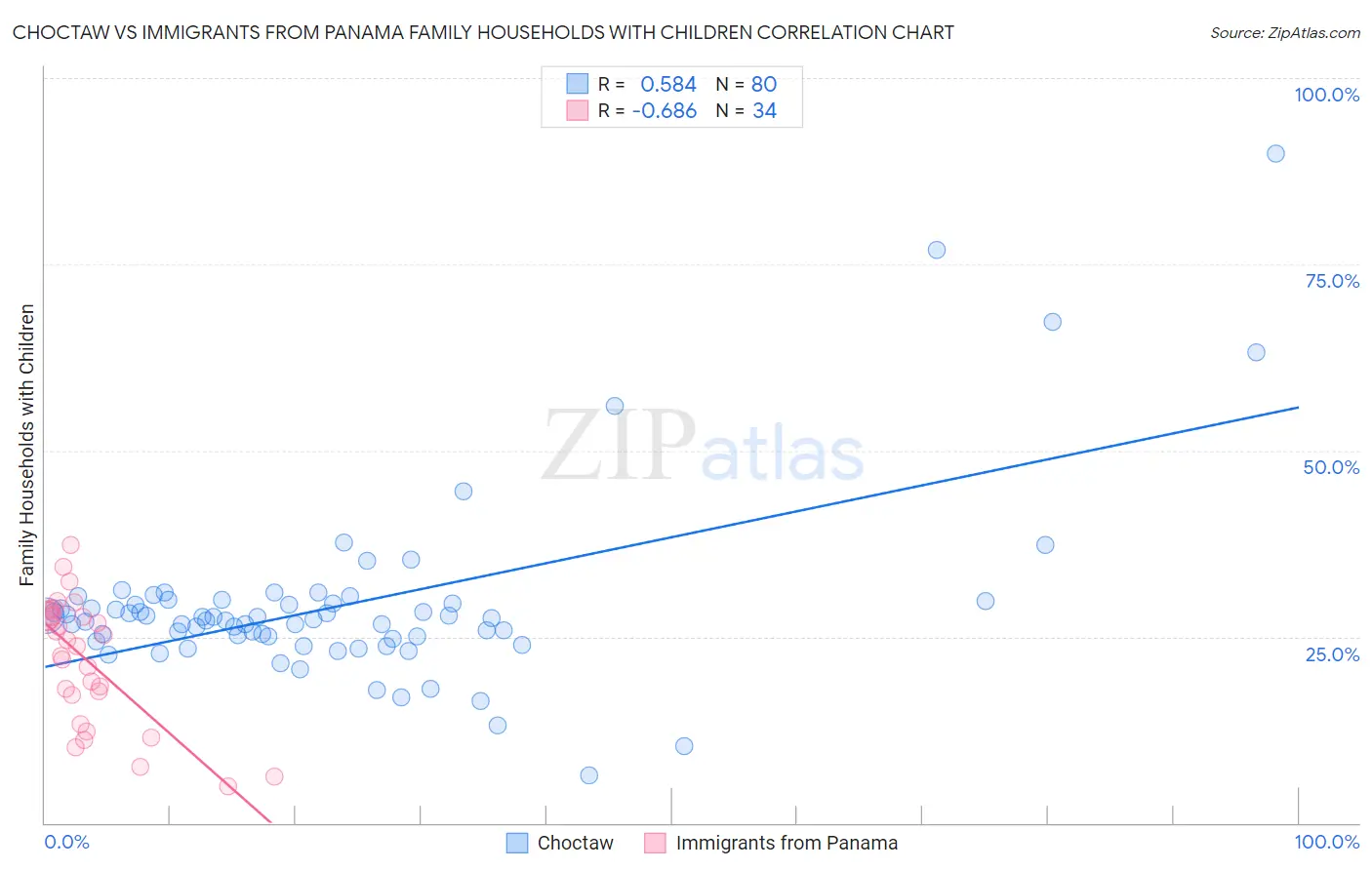 Choctaw vs Immigrants from Panama Family Households with Children Correlation Chart