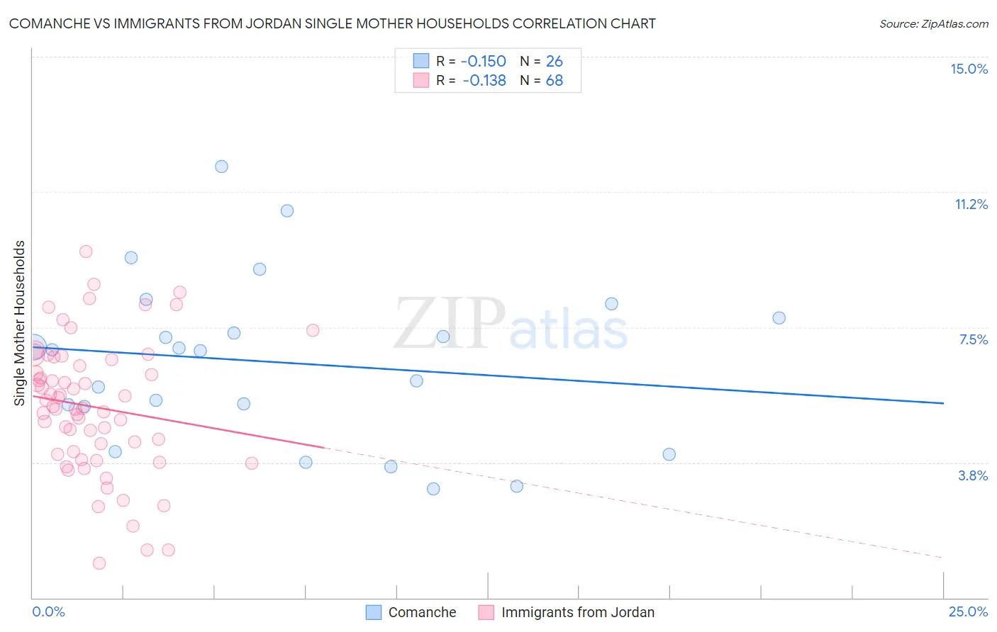 Comanche vs Immigrants from Jordan Single Mother Households Correlation Chart
