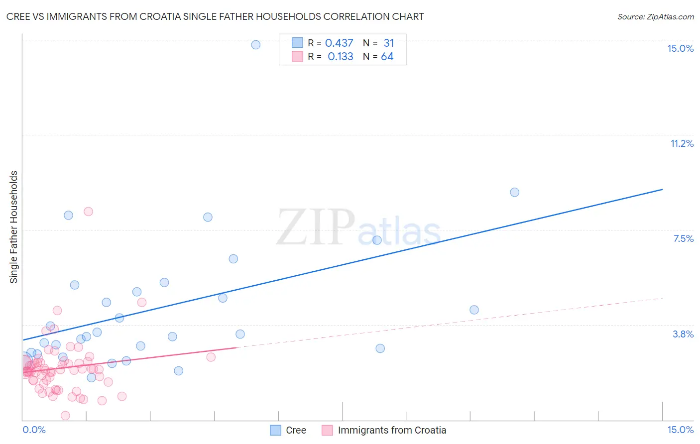 Cree vs Immigrants from Croatia Single Father Households Correlation Chart