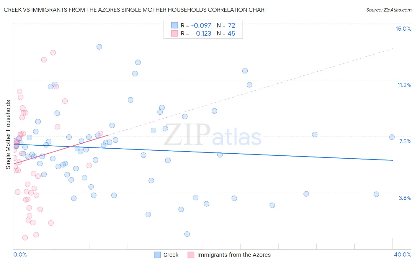Creek vs Immigrants from the Azores Single Mother Households Correlation Chart