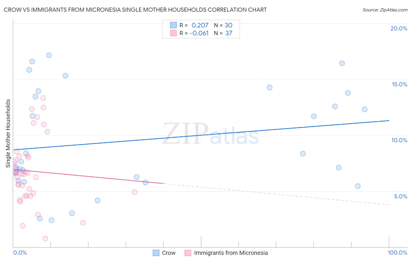 Crow vs Immigrants from Micronesia Single Mother Households Correlation Chart