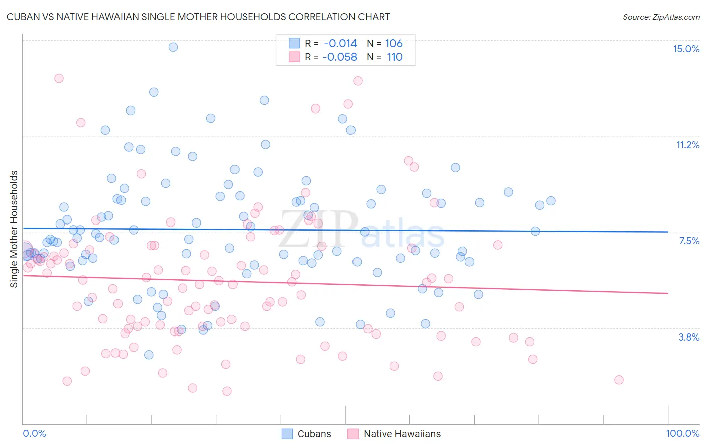 Cuban vs Native Hawaiian Single Mother Households Correlation Chart