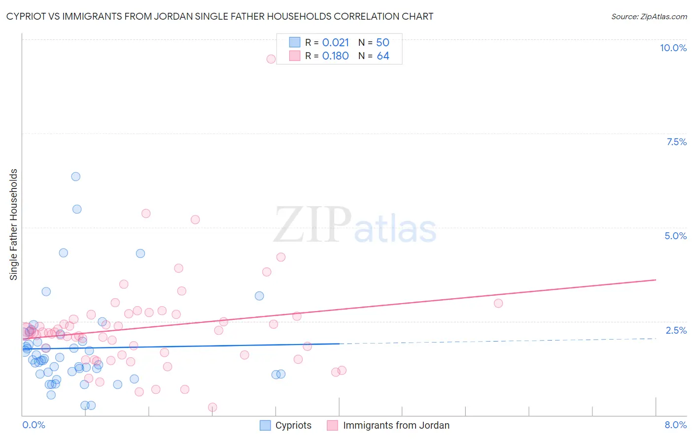 Cypriot vs Immigrants from Jordan Single Father Households Correlation Chart