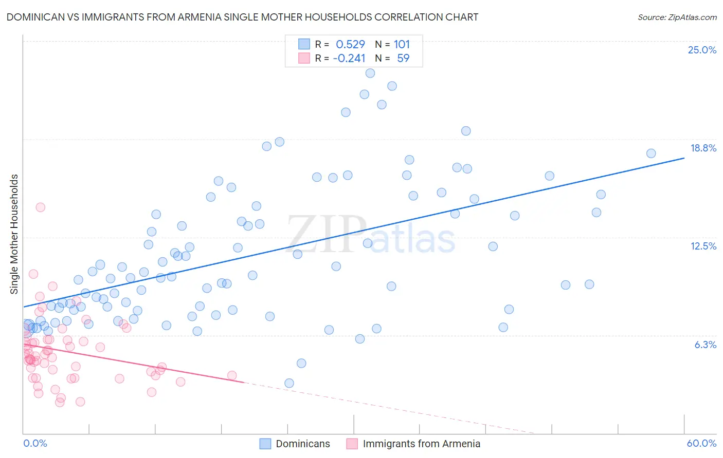 Dominican vs Immigrants from Armenia Single Mother Households Correlation Chart