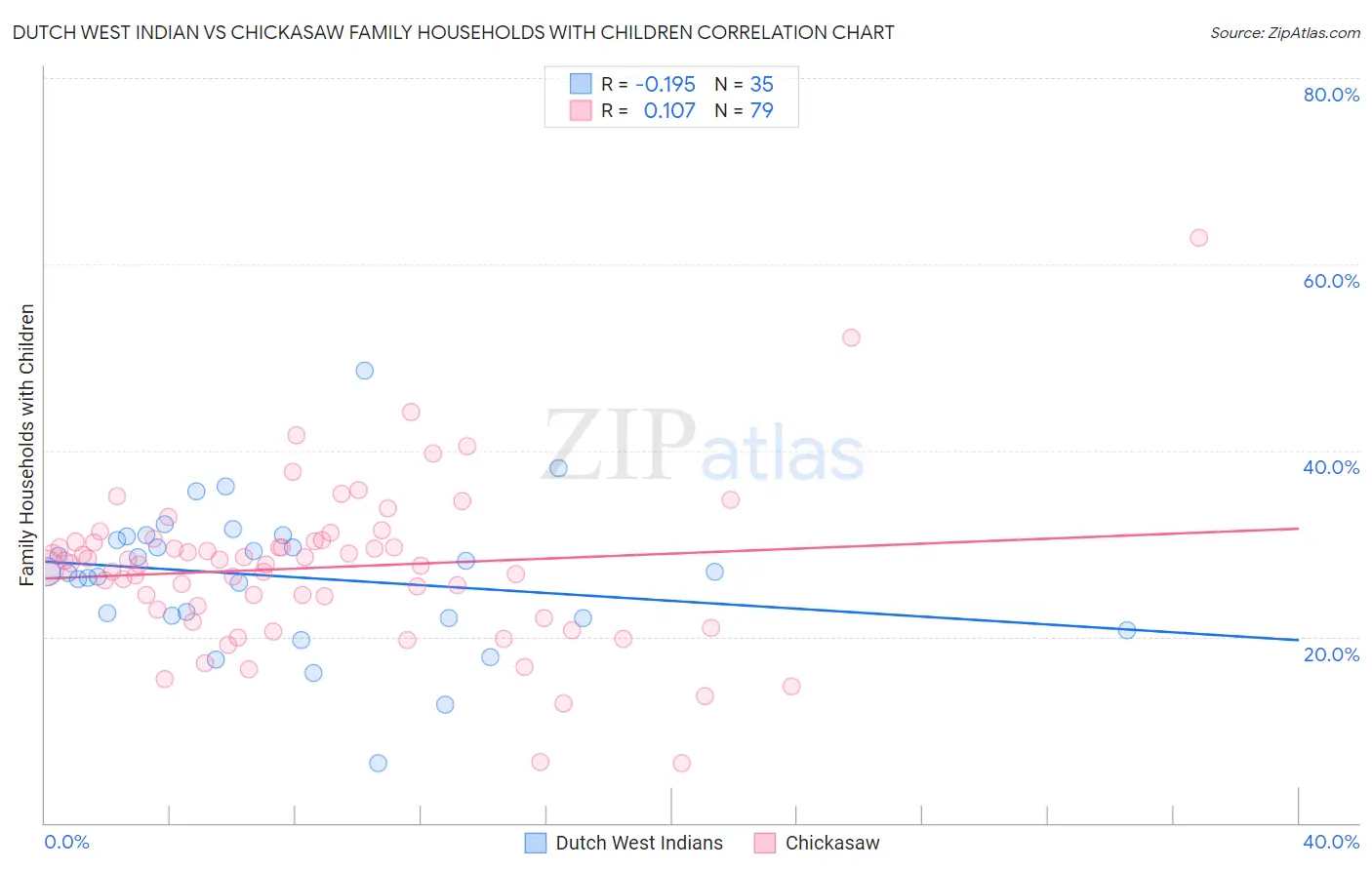 Dutch West Indian vs Chickasaw Family Households with Children Correlation Chart
