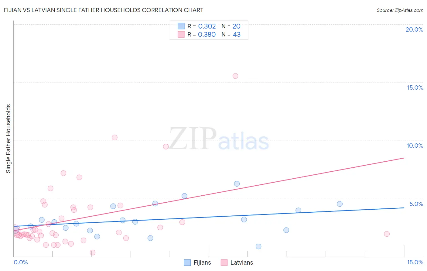 Fijian vs Latvian Single Father Households Correlation Chart