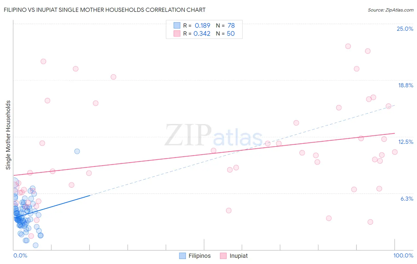 Filipino vs Inupiat Single Mother Households Correlation Chart