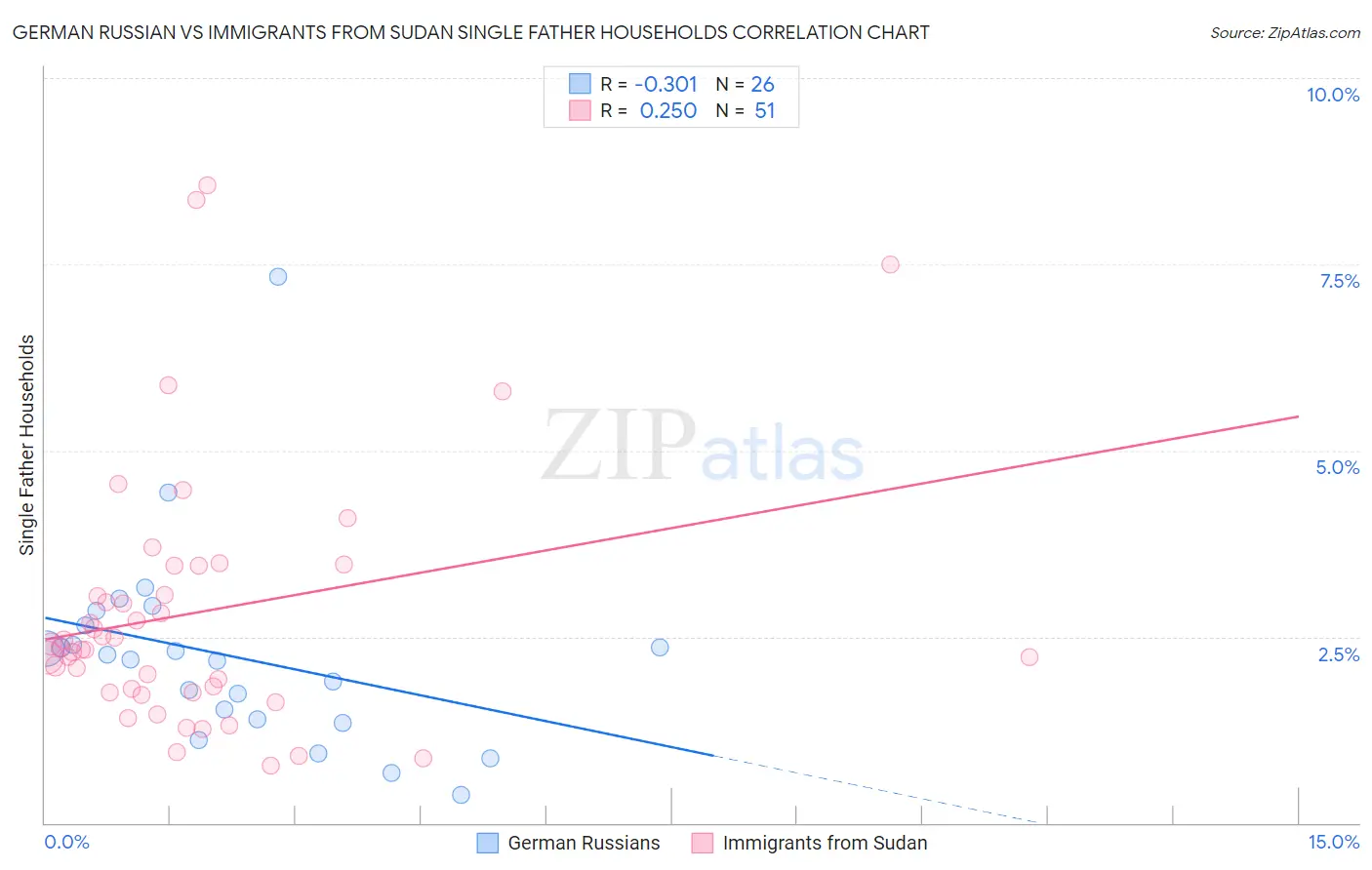 German Russian vs Immigrants from Sudan Single Father Households Correlation Chart