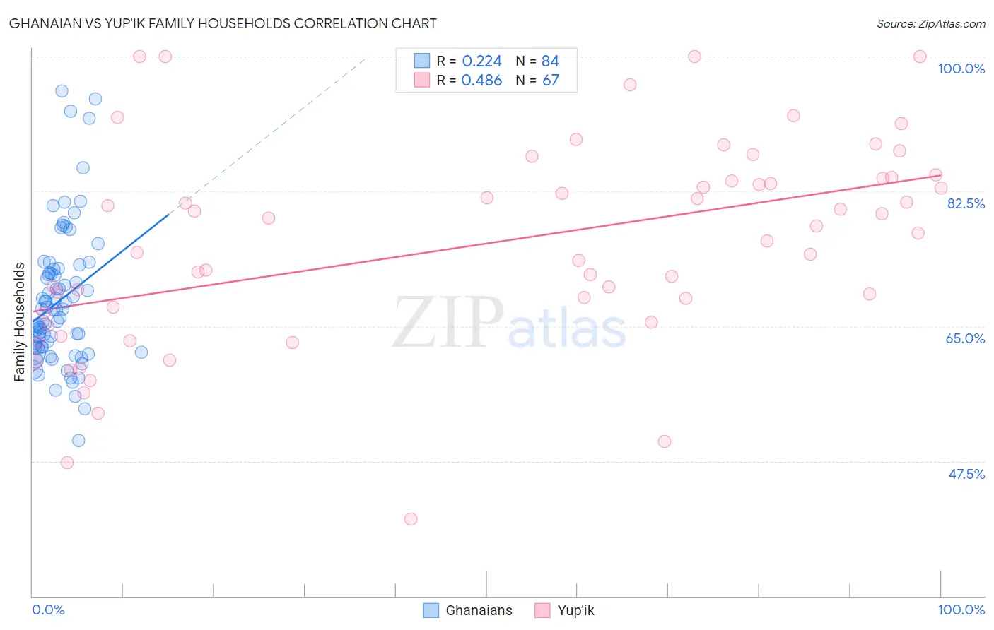 Ghanaian vs Yup'ik Family Households Correlation Chart