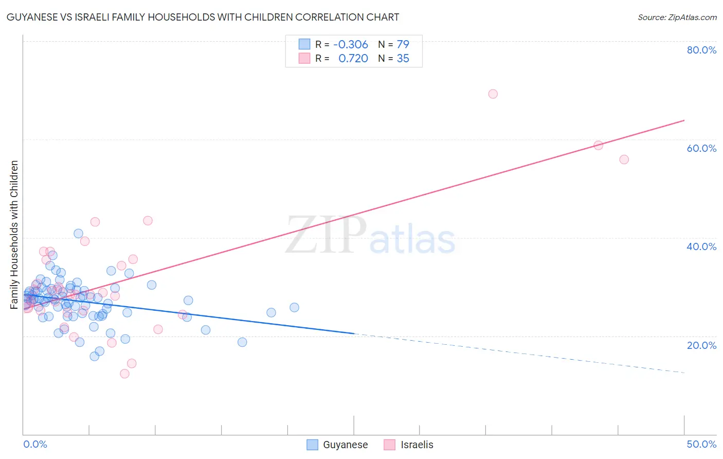 Guyanese vs Israeli Family Households with Children Correlation Chart