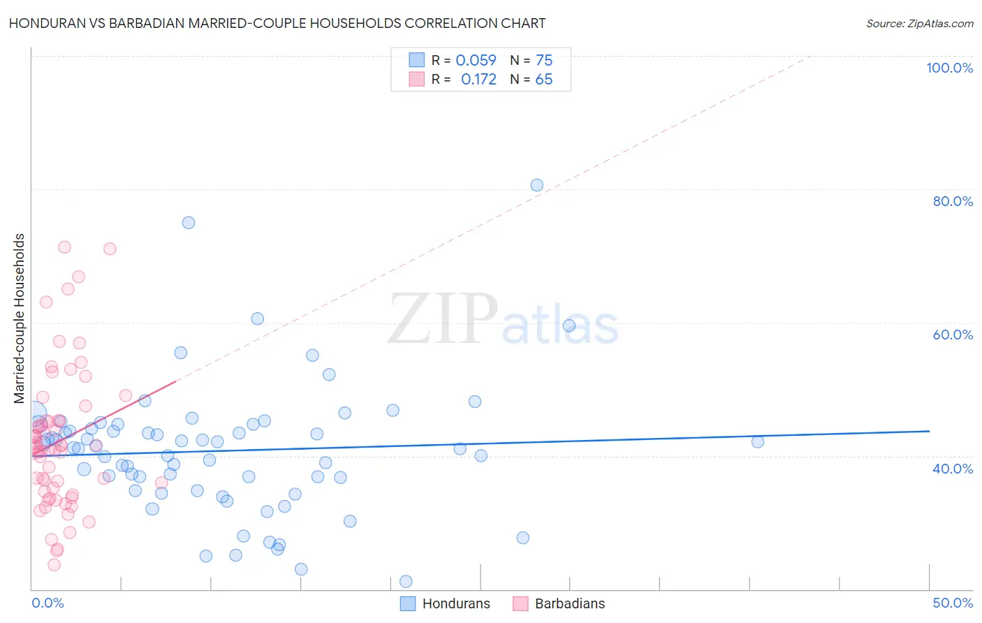 Honduran vs Barbadian Married-couple Households Correlation Chart