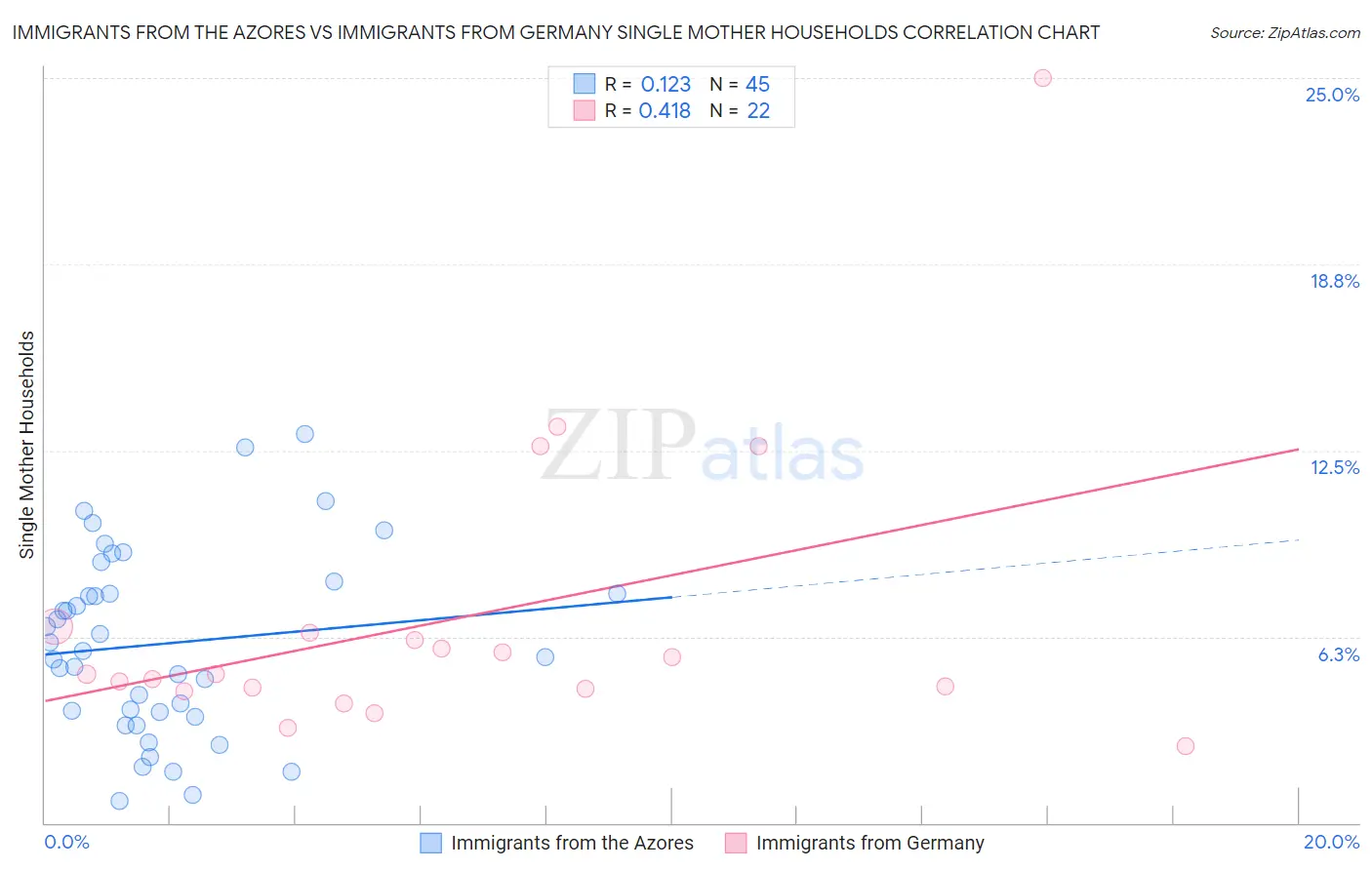 Immigrants from the Azores vs Immigrants from Germany Single Mother Households Correlation Chart