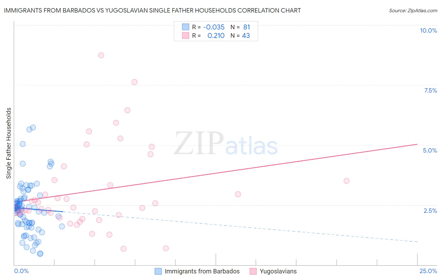 Immigrants from Barbados vs Yugoslavian Single Father Households Correlation Chart