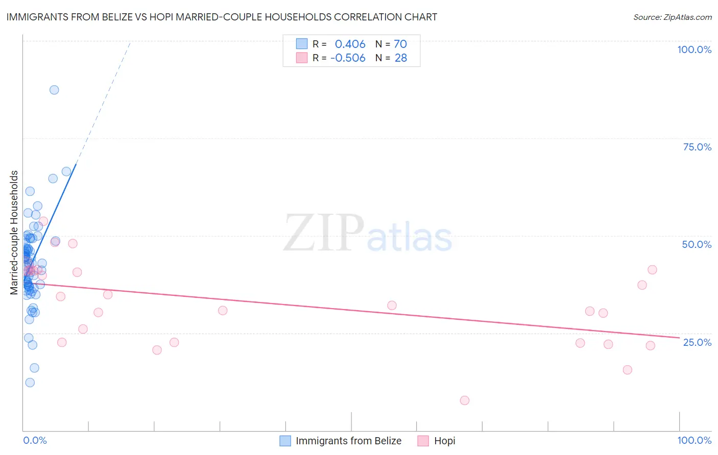 Immigrants from Belize vs Hopi Married-couple Households Correlation Chart