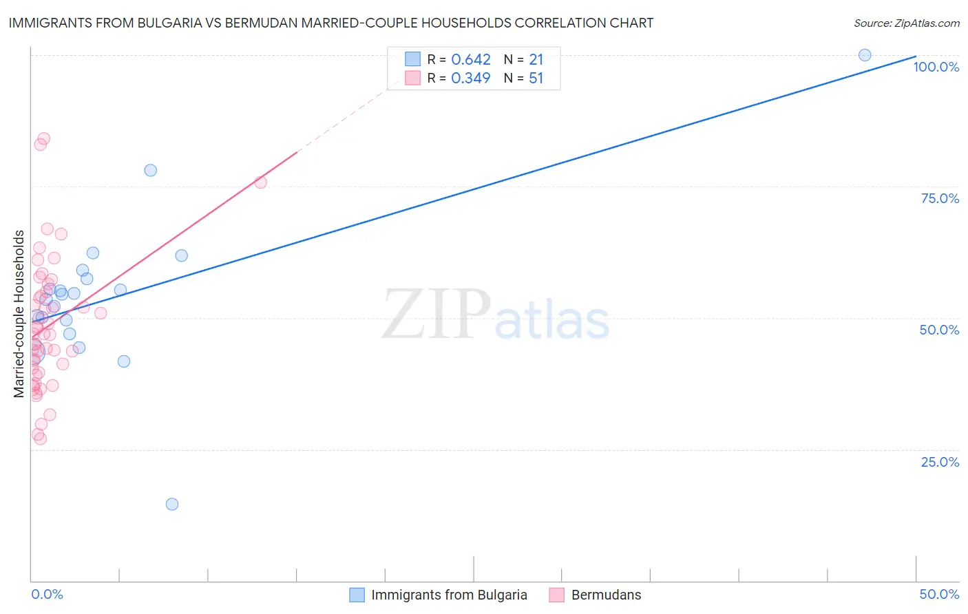 Immigrants from Bulgaria vs Bermudan Married-couple Households Correlation Chart