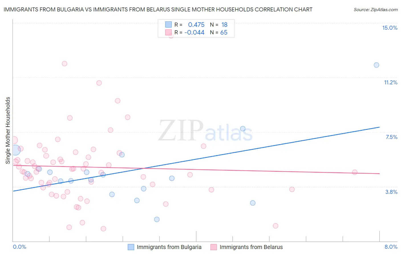 Immigrants from Bulgaria vs Immigrants from Belarus Single Mother Households Correlation Chart