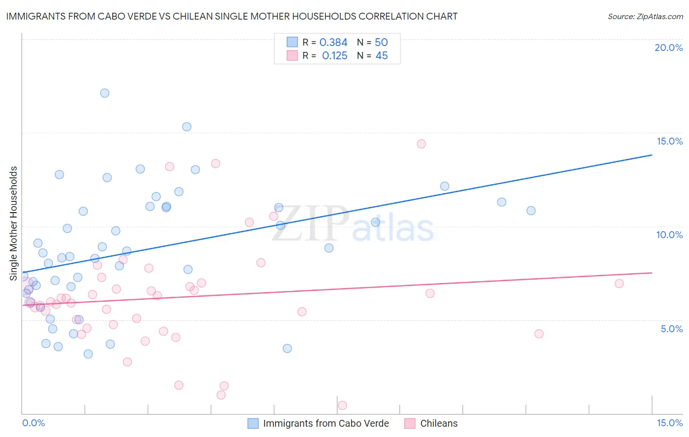 Immigrants from Cabo Verde vs Chilean Single Mother Households Correlation Chart