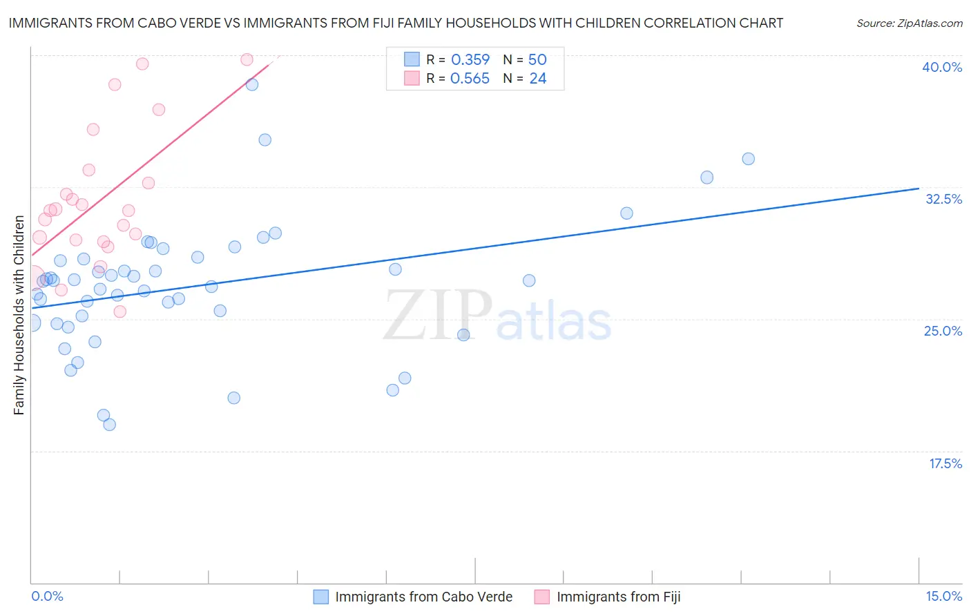 Immigrants from Cabo Verde vs Immigrants from Fiji Family Households with Children Correlation Chart
