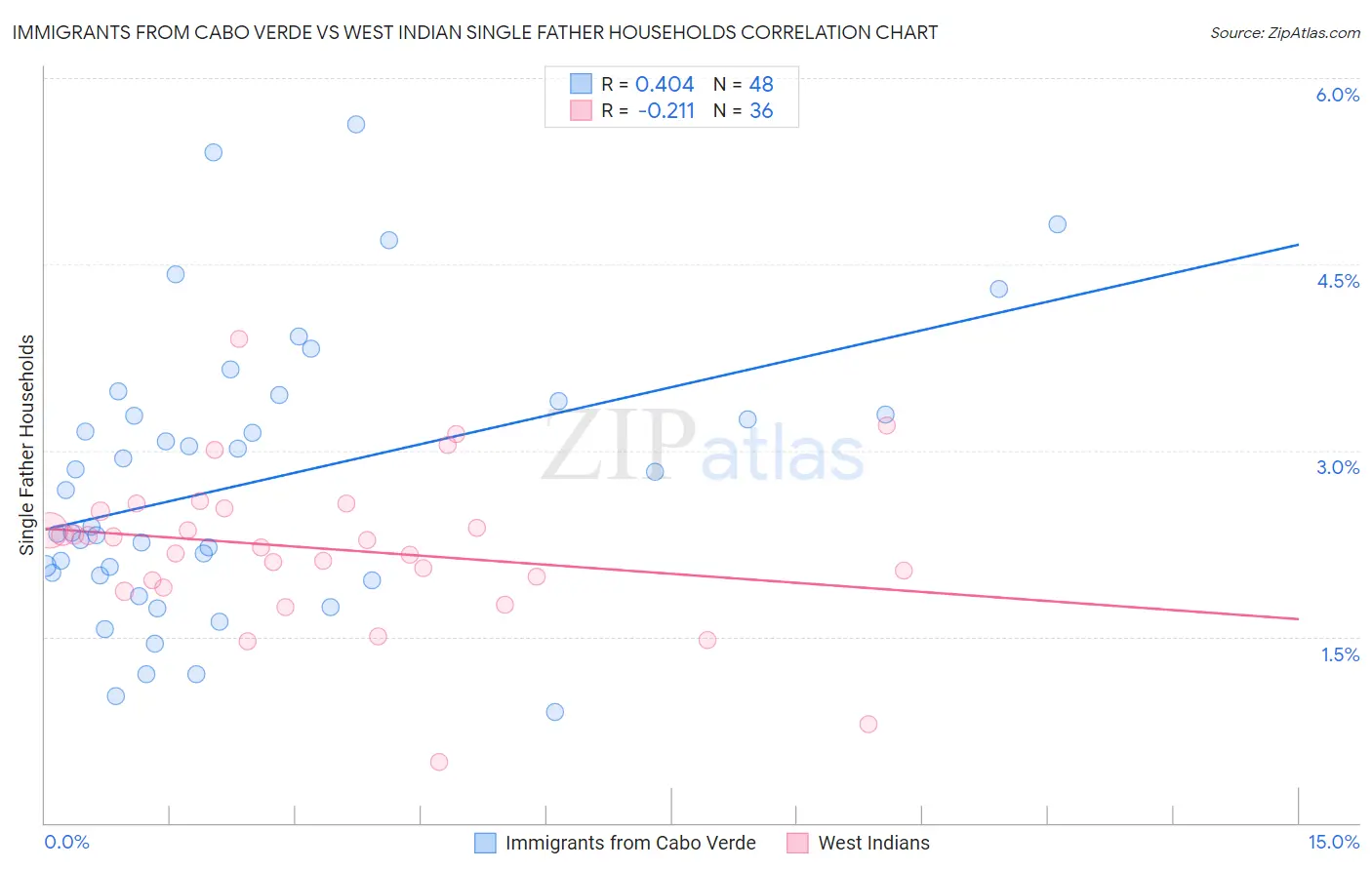 Immigrants from Cabo Verde vs West Indian Single Father Households Correlation Chart