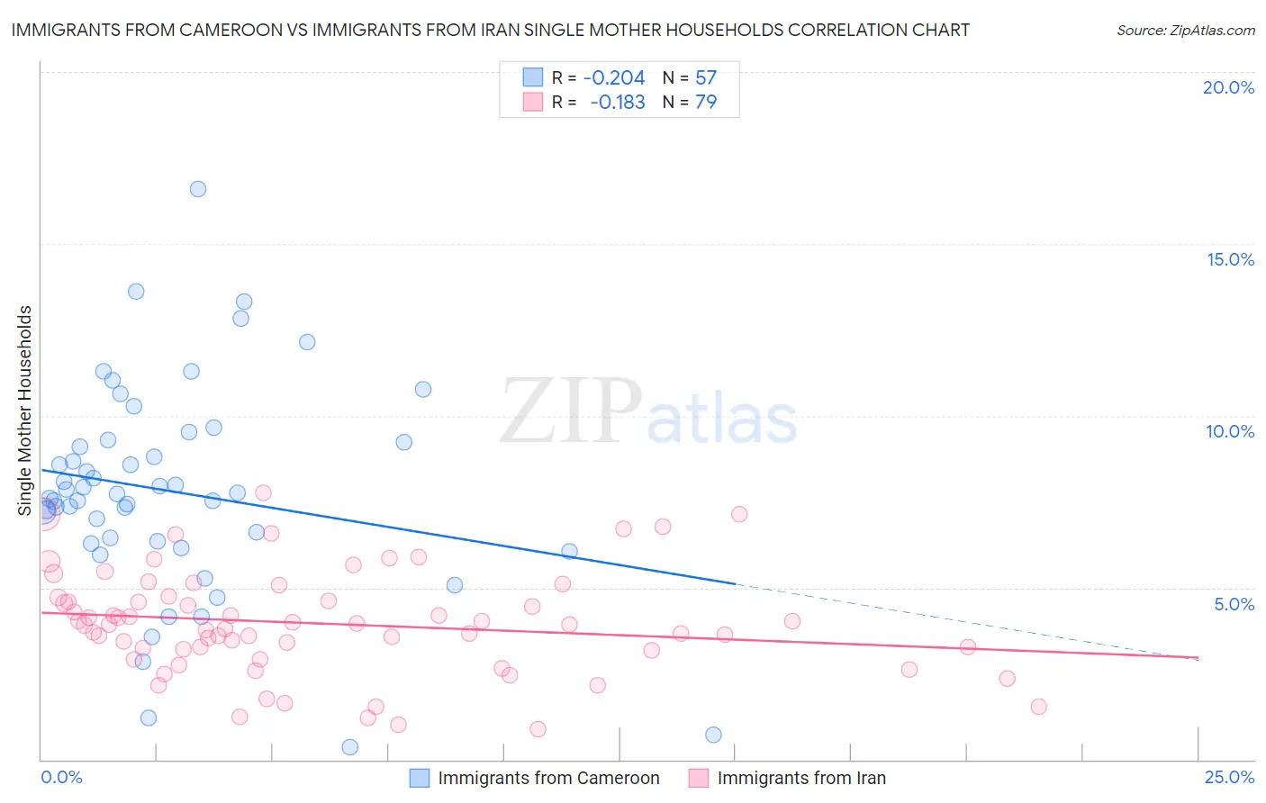 Immigrants from Cameroon vs Immigrants from Iran Single Mother Households Correlation Chart