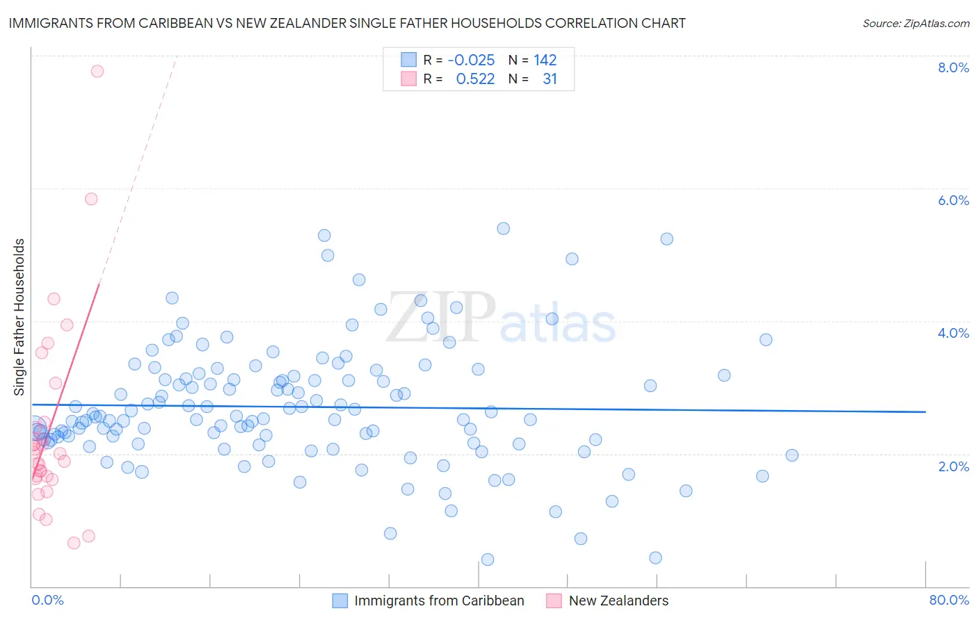 Immigrants from Caribbean vs New Zealander Single Father Households Correlation Chart