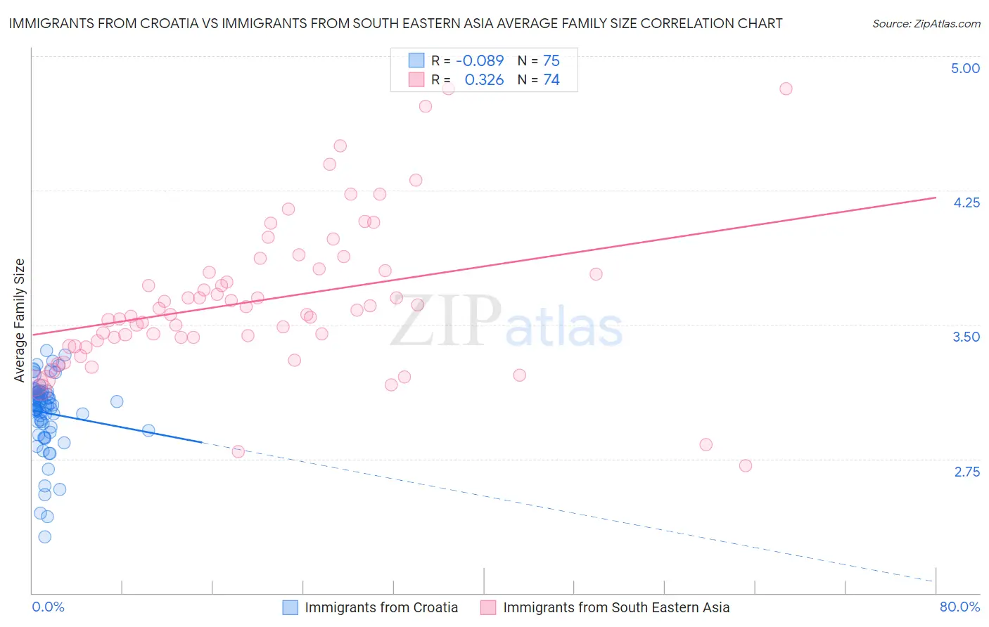 Immigrants from Croatia vs Immigrants from South Eastern Asia Average Family Size Correlation Chart