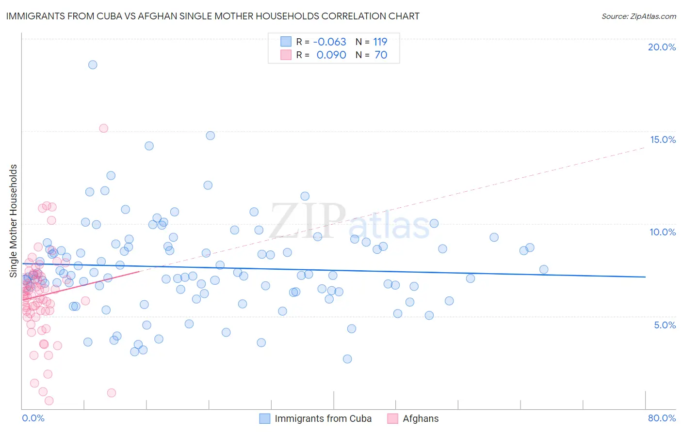 Immigrants from Cuba vs Afghan Single Mother Households Correlation Chart