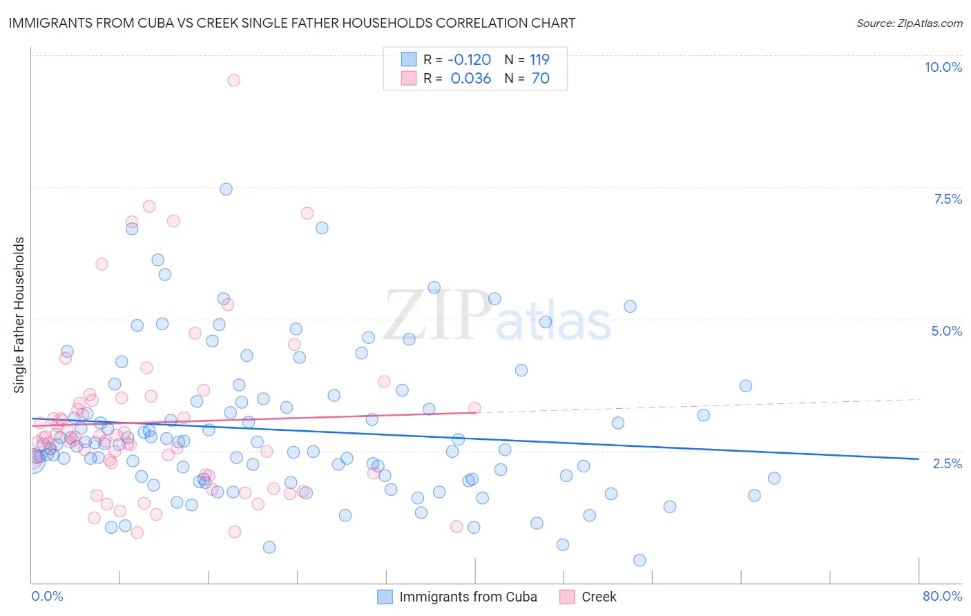 Immigrants from Cuba vs Creek Single Father Households Correlation Chart