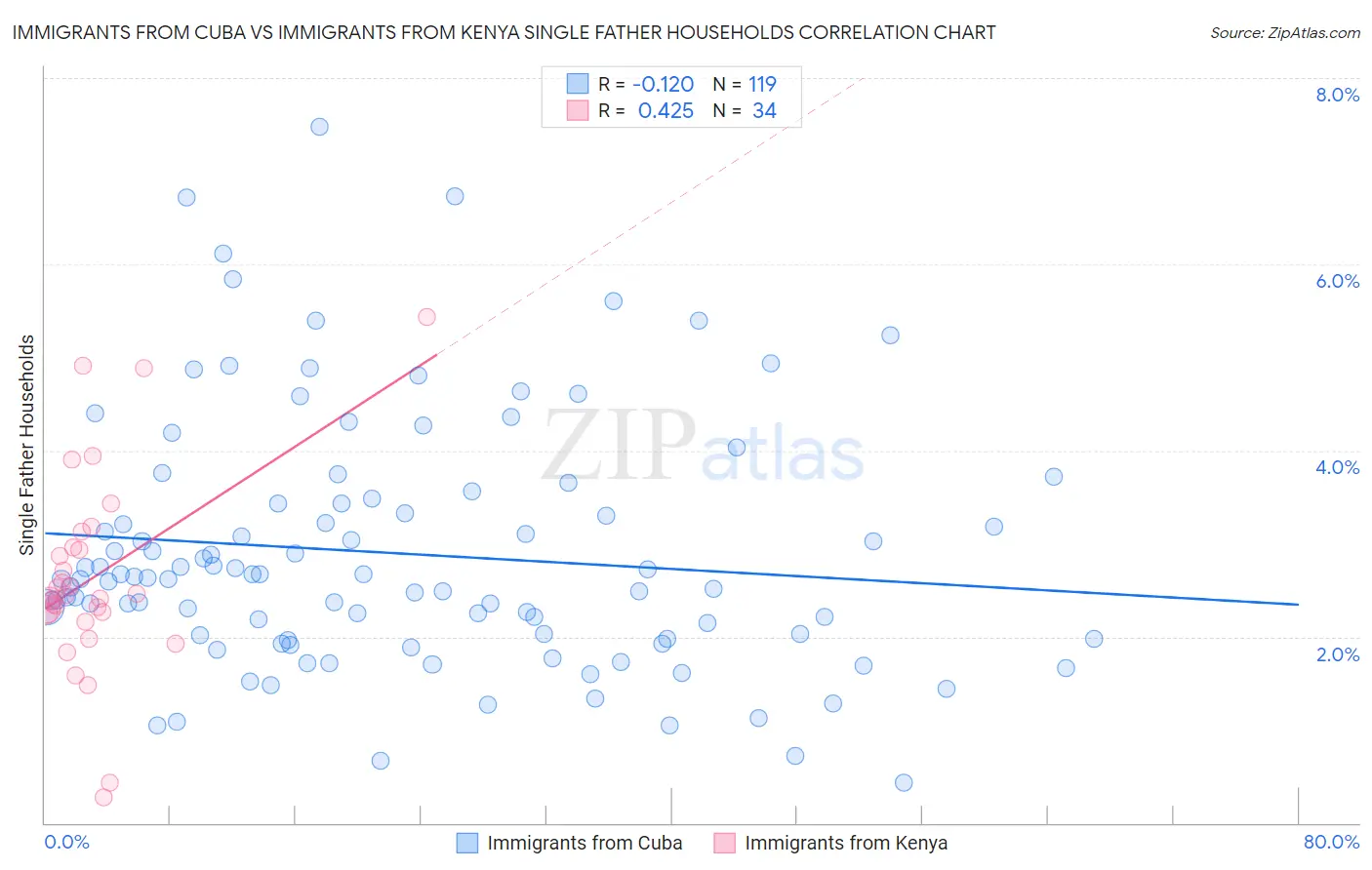 Immigrants from Cuba vs Immigrants from Kenya Single Father Households Correlation Chart