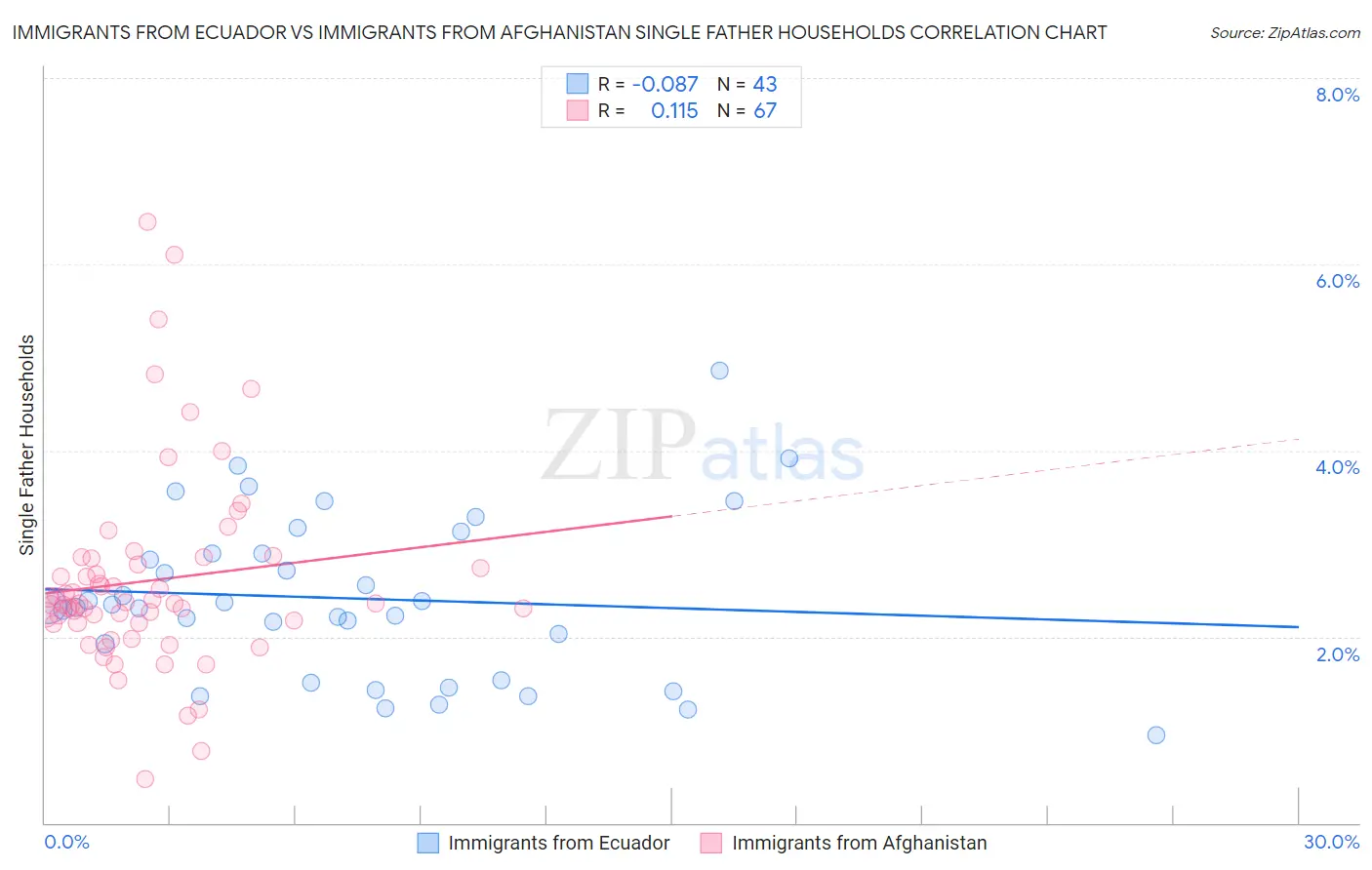 Immigrants from Ecuador vs Immigrants from Afghanistan Single Father Households Correlation Chart