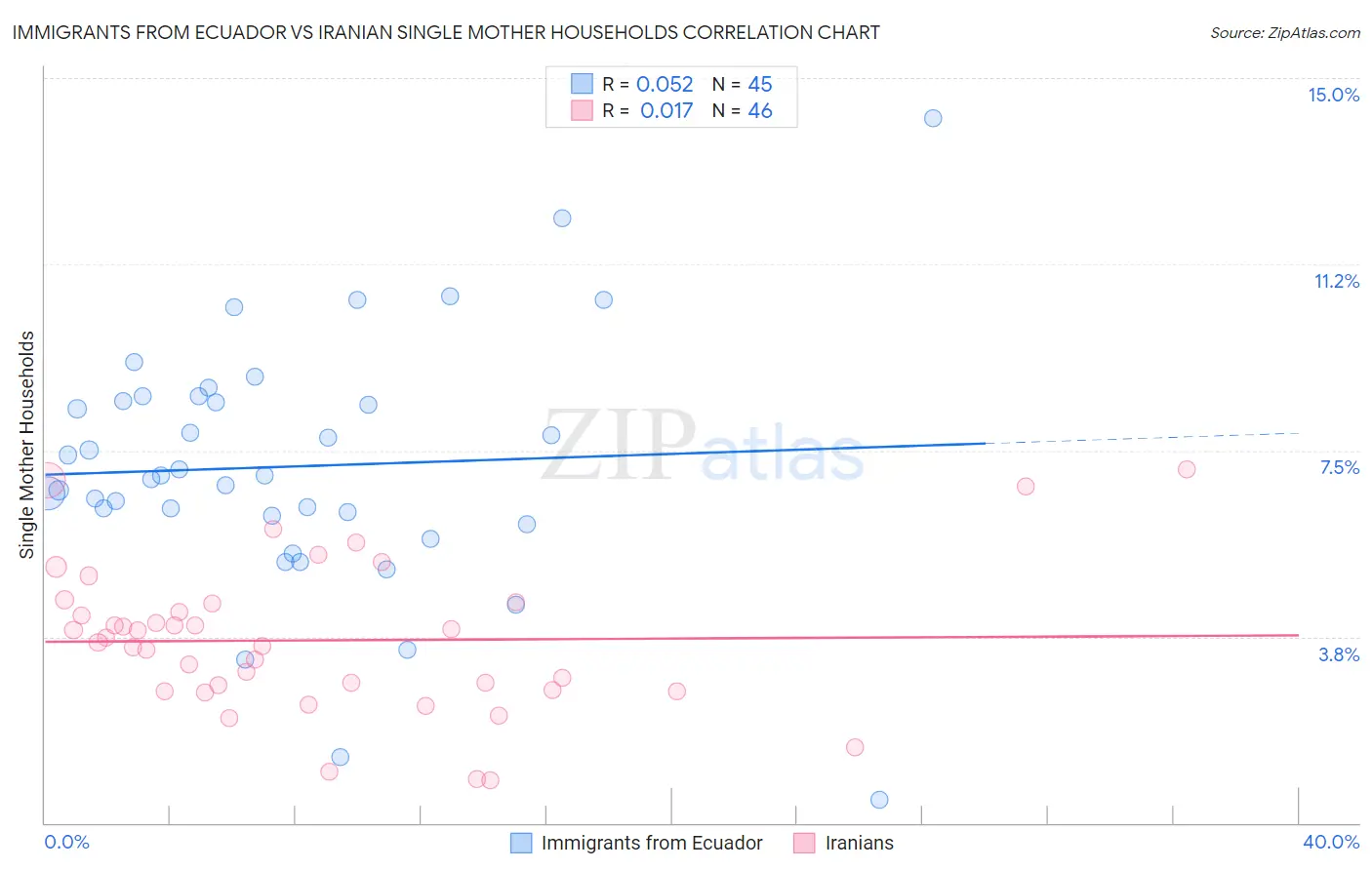 Immigrants from Ecuador vs Iranian Single Mother Households Correlation Chart