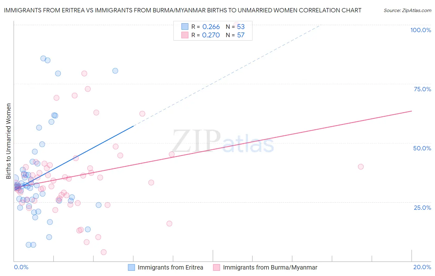 Immigrants from Eritrea vs Immigrants from Burma/Myanmar Births to Unmarried Women Correlation Chart
