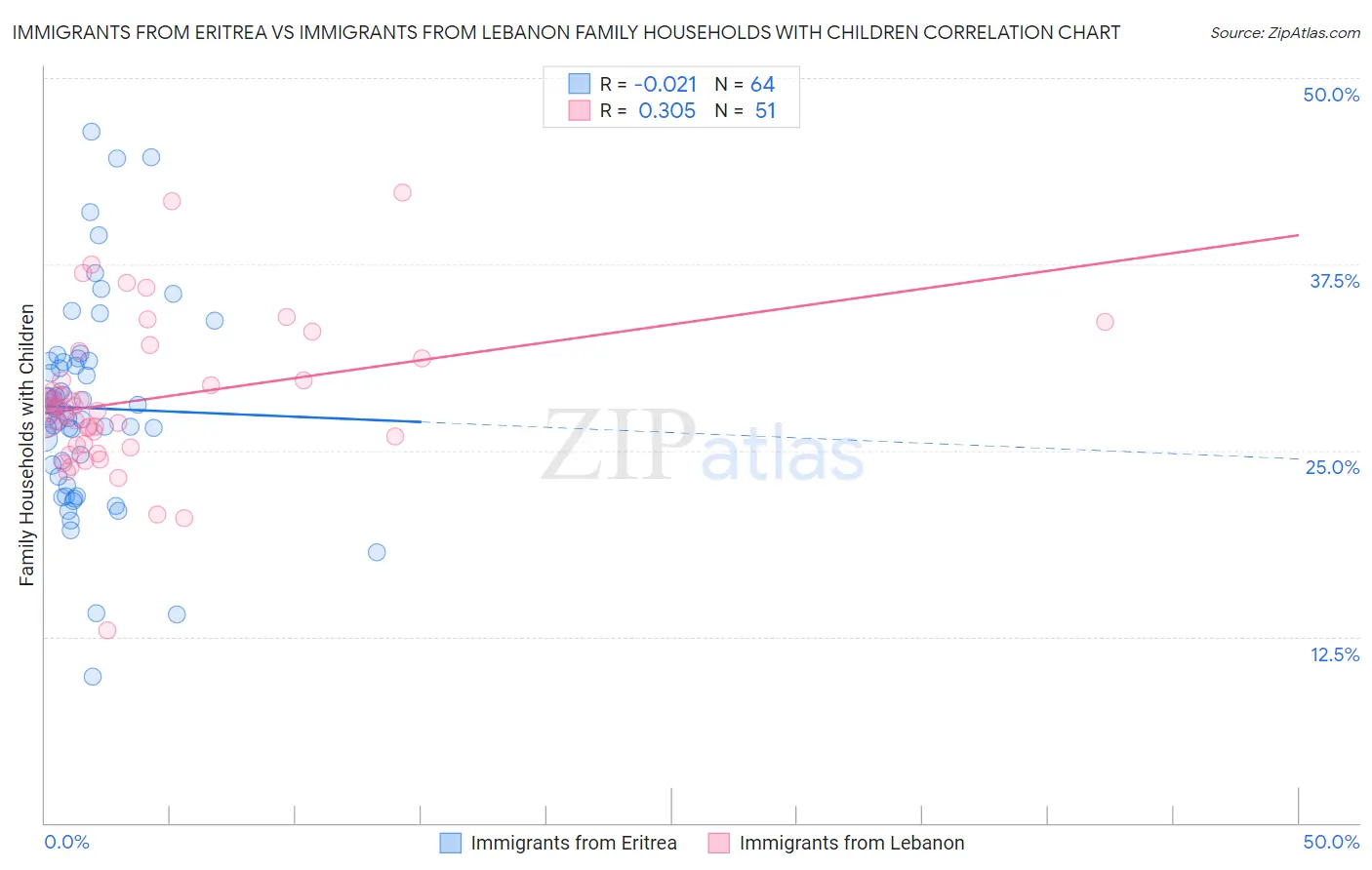 Immigrants from Eritrea vs Immigrants from Lebanon Family Households with Children Correlation Chart
