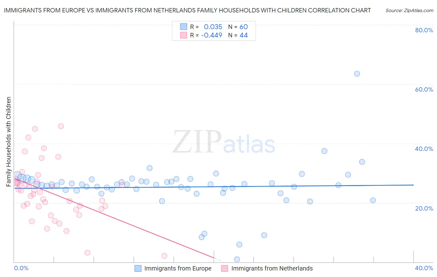 Immigrants from Europe vs Immigrants from Netherlands Family Households with Children Correlation Chart