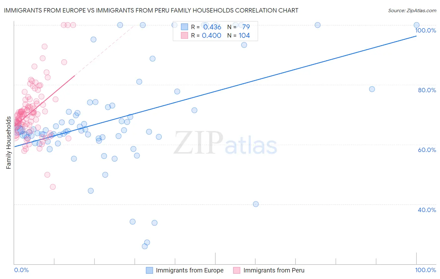 Immigrants from Europe vs Immigrants from Peru Family Households Correlation Chart