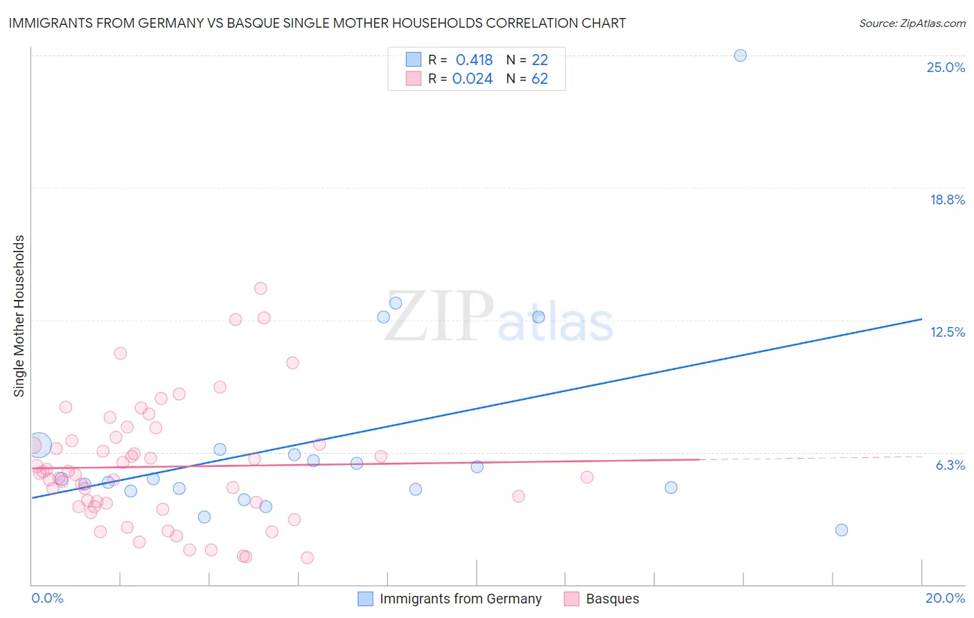 Immigrants from Germany vs Basque Single Mother Households Correlation Chart