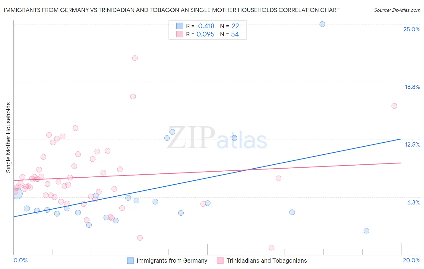 Immigrants from Germany vs Trinidadian and Tobagonian Single Mother Households Correlation Chart