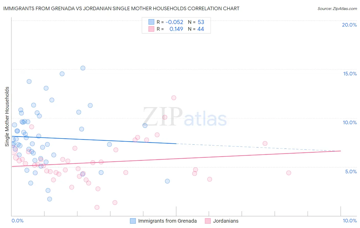 Immigrants from Grenada vs Jordanian Single Mother Households Correlation Chart