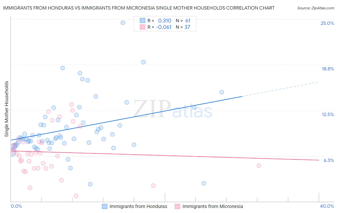 Immigrants from Honduras vs Immigrants from Micronesia Single Mother Households Correlation Chart