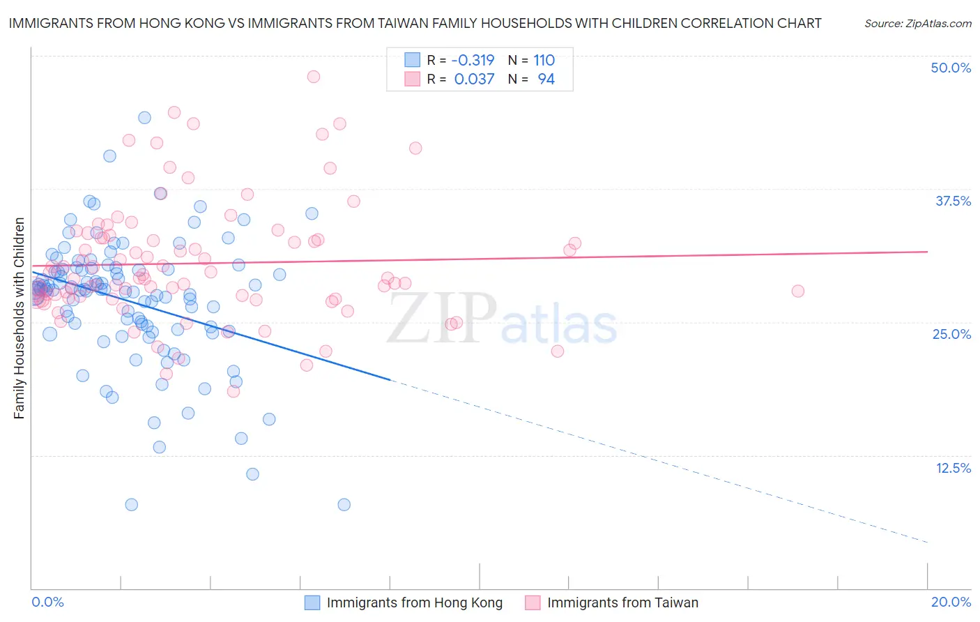 Immigrants from Hong Kong vs Immigrants from Taiwan Family Households with Children Correlation Chart