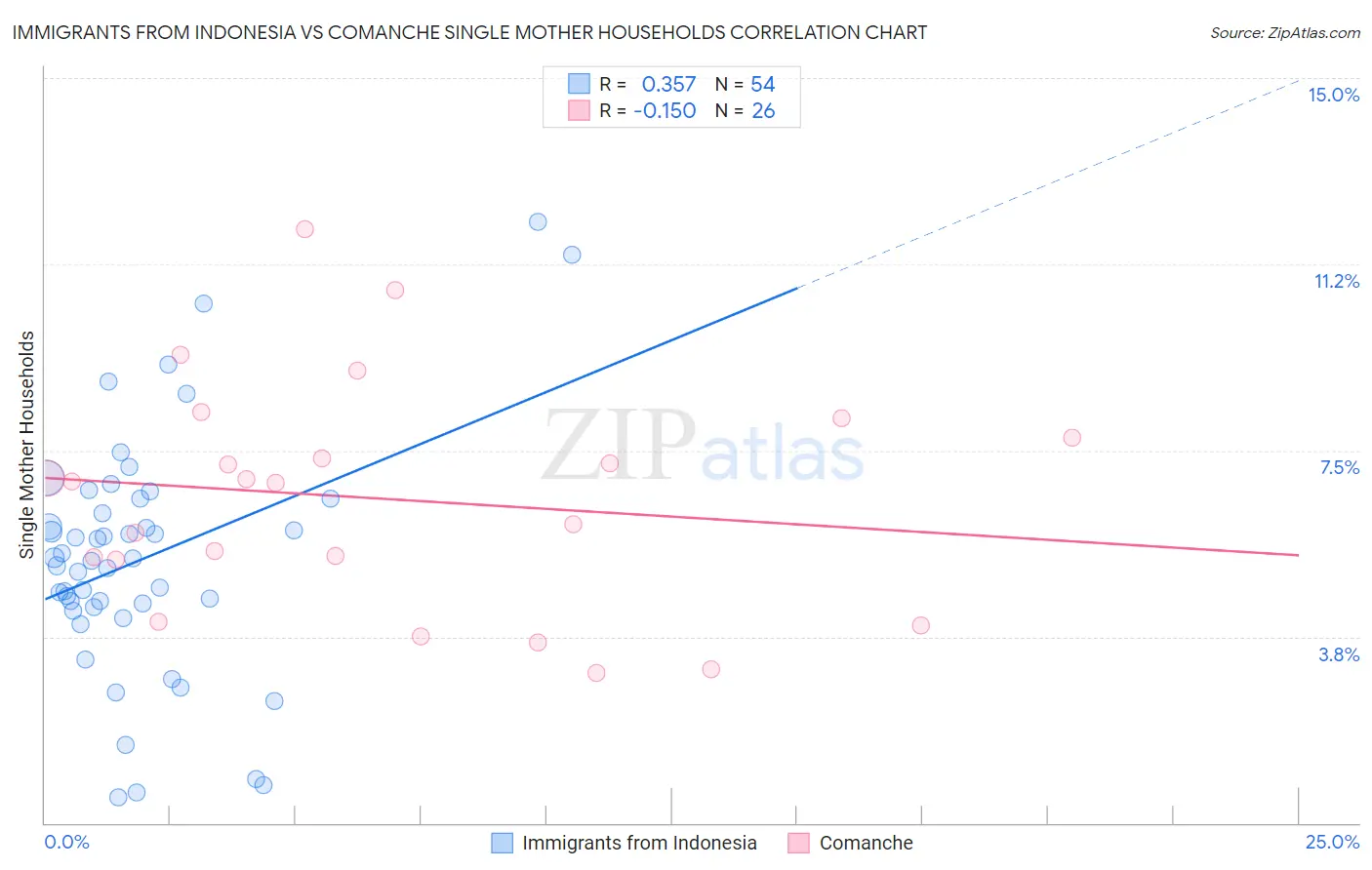 Immigrants from Indonesia vs Comanche Single Mother Households Correlation Chart