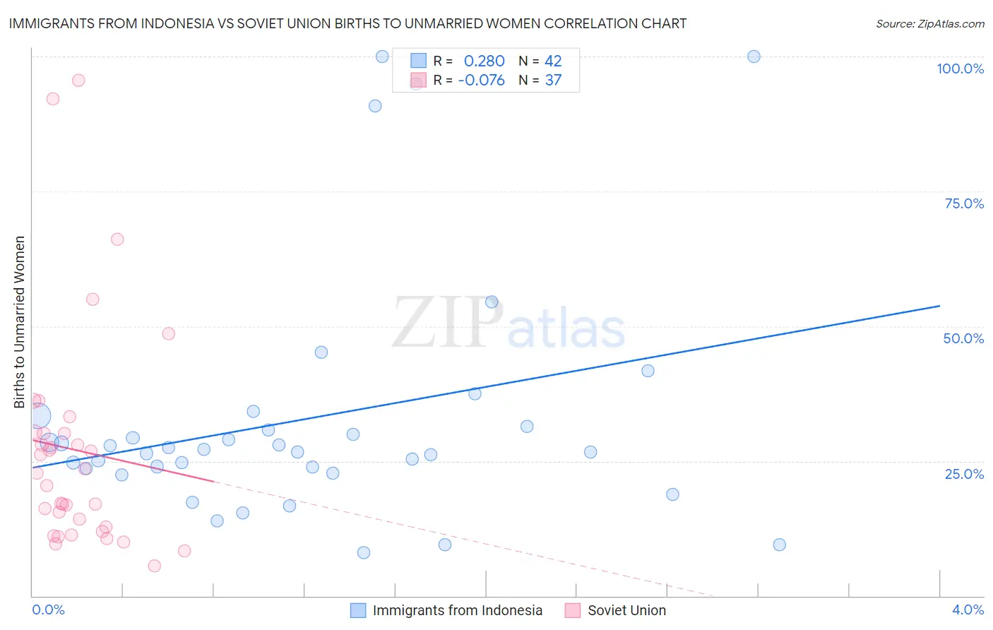 Immigrants from Indonesia vs Soviet Union Births to Unmarried Women Correlation Chart