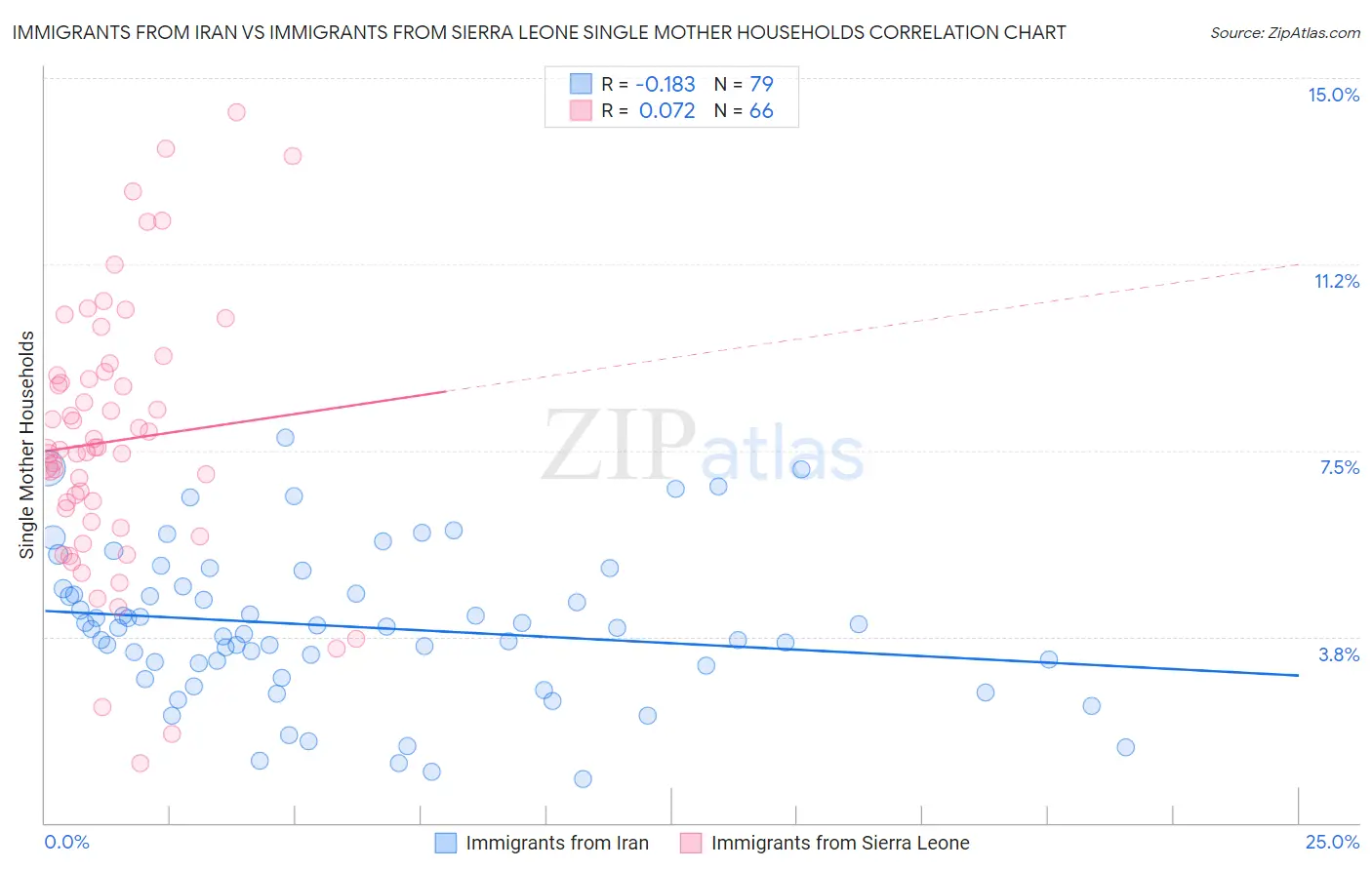 Immigrants from Iran vs Immigrants from Sierra Leone Single Mother Households Correlation Chart