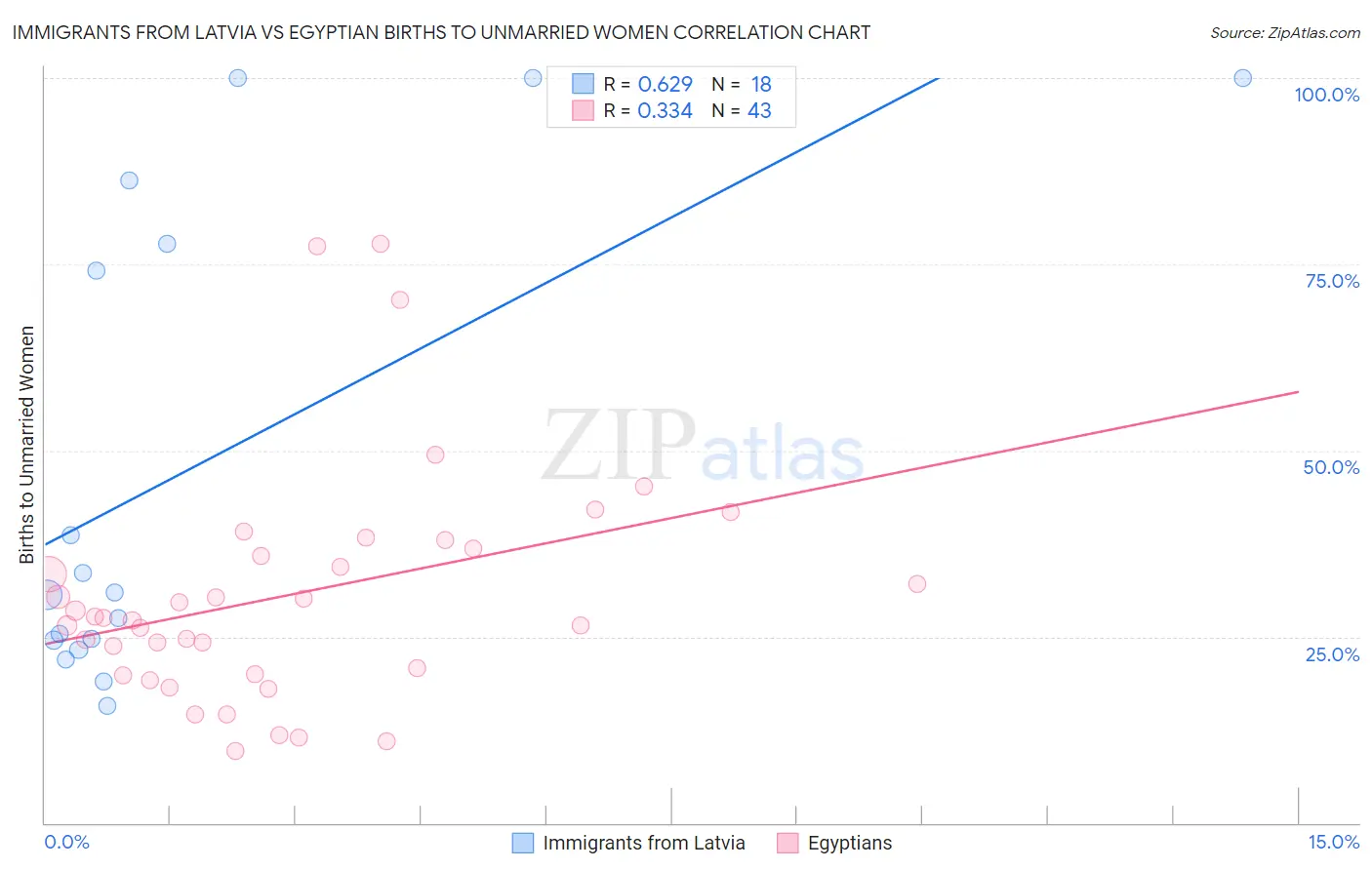 Immigrants from Latvia vs Egyptian Births to Unmarried Women Correlation Chart