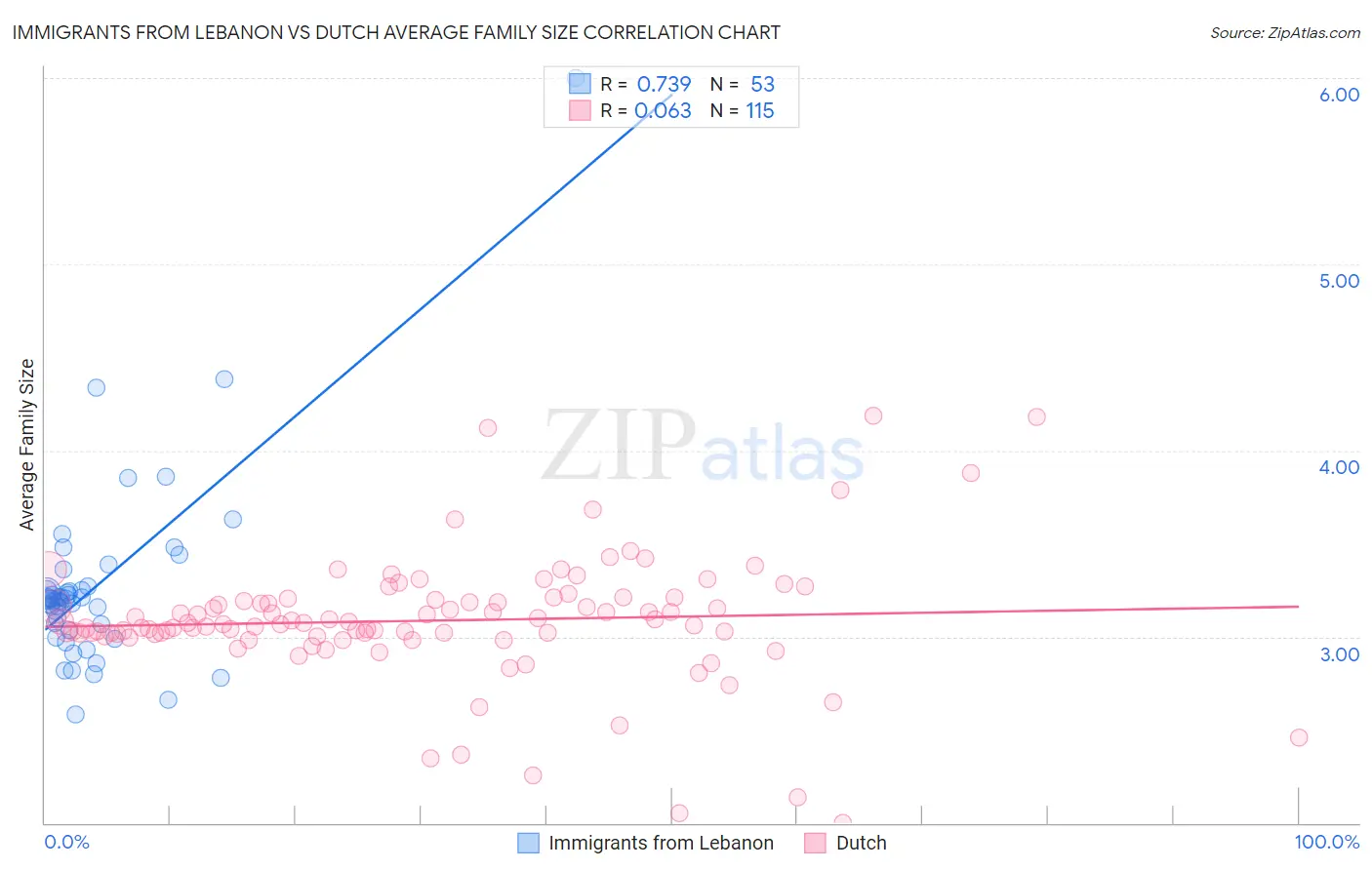 Immigrants from Lebanon vs Dutch Average Family Size Correlation Chart