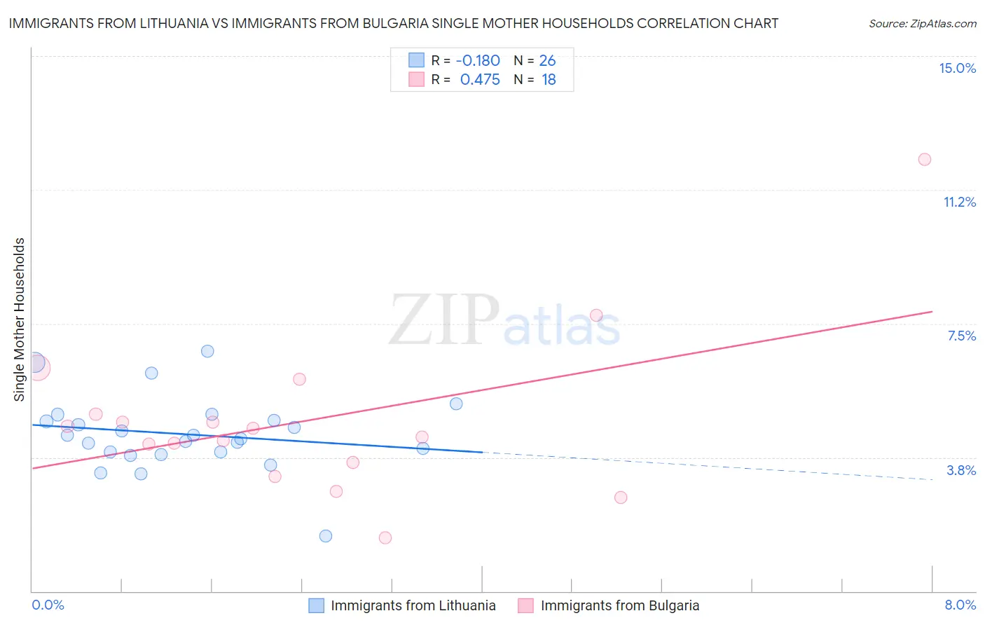 Immigrants from Lithuania vs Immigrants from Bulgaria Single Mother Households Correlation Chart